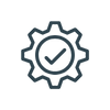A gear with a checkmark inside it, symbolising settings or process approval.